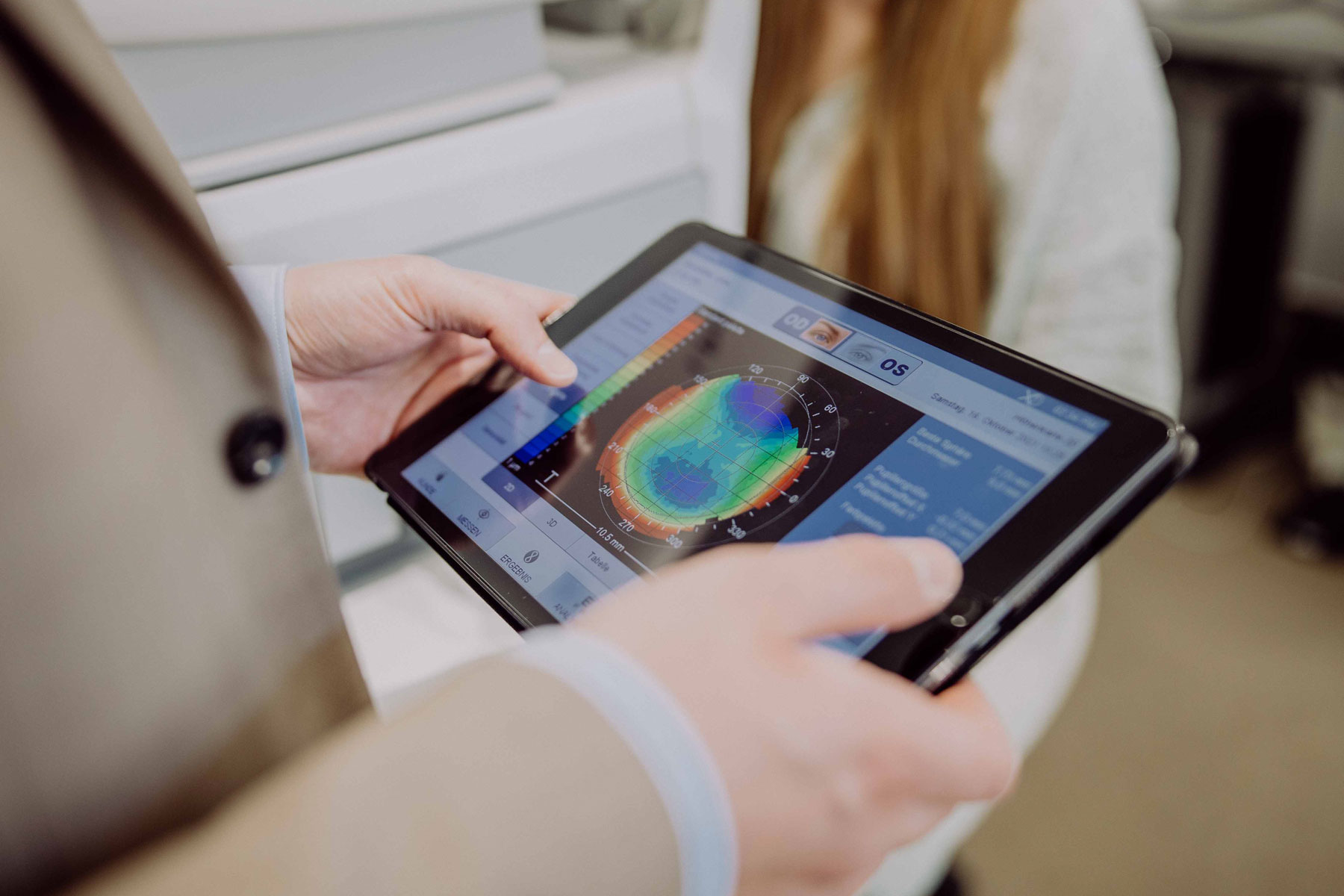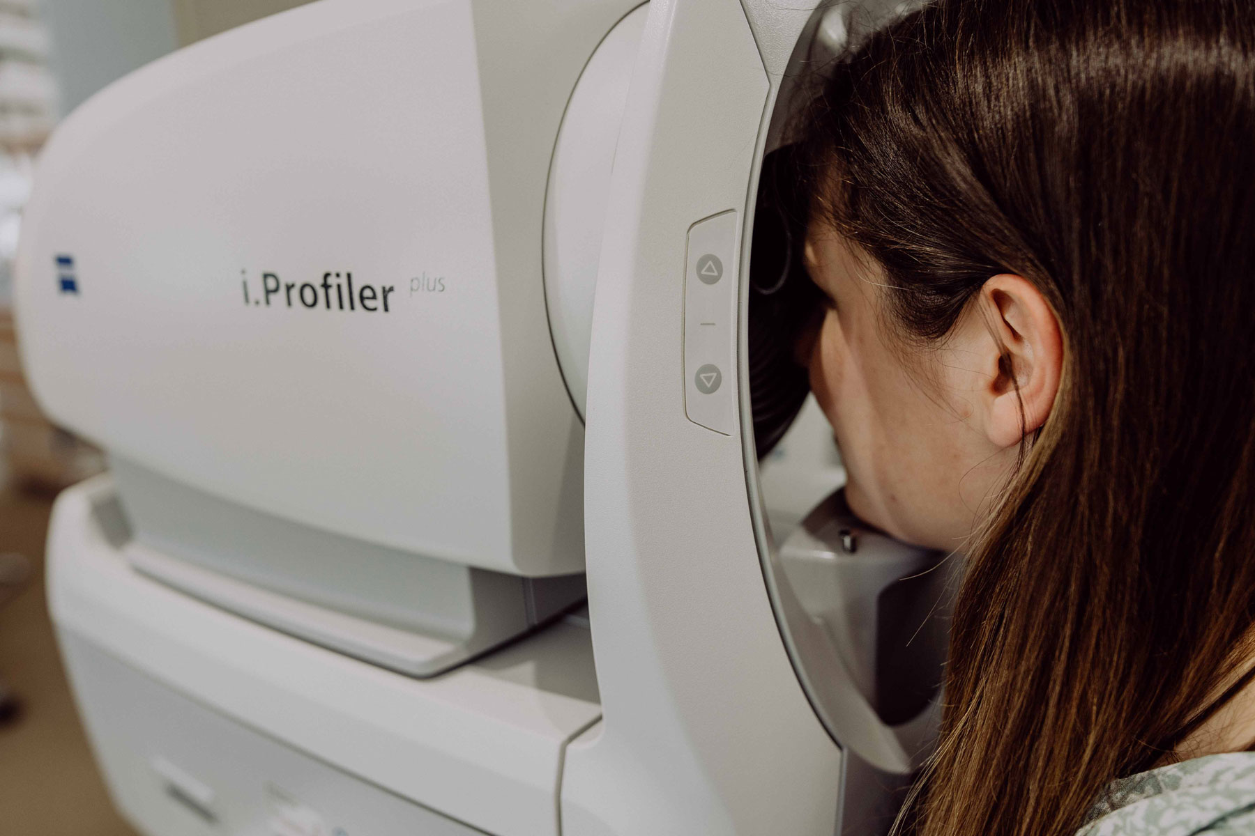 Die Auswahl an Brillengläsern ist riesig. Damit wir für jede Situation die besten Brillengläser und Kontaktlinsen finden, steht uns der ZEISS i.Profiler zur Verfügung. Dieser misst zahlreiche Werte und kreiert Ihren persönlichen „optischen Fingerabdruck“ des Auges, aus dem wir das ideale Glas für Sie auswählen und Ihre Dioptrie auf ein Hundertstel genau bestimmen.
